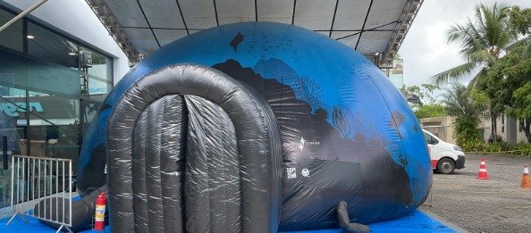 O destaque do projeto é o cinema em 180°, que exibe o curta “Um mergulho no desconhecido” dentro de um oceanário itinerante. Essa tecnologia permite ampliar o campo visual dos alunos para que sintam a imersão no ambiente marinho, com sons e imagens que destacam a biodiversidade do oceano.